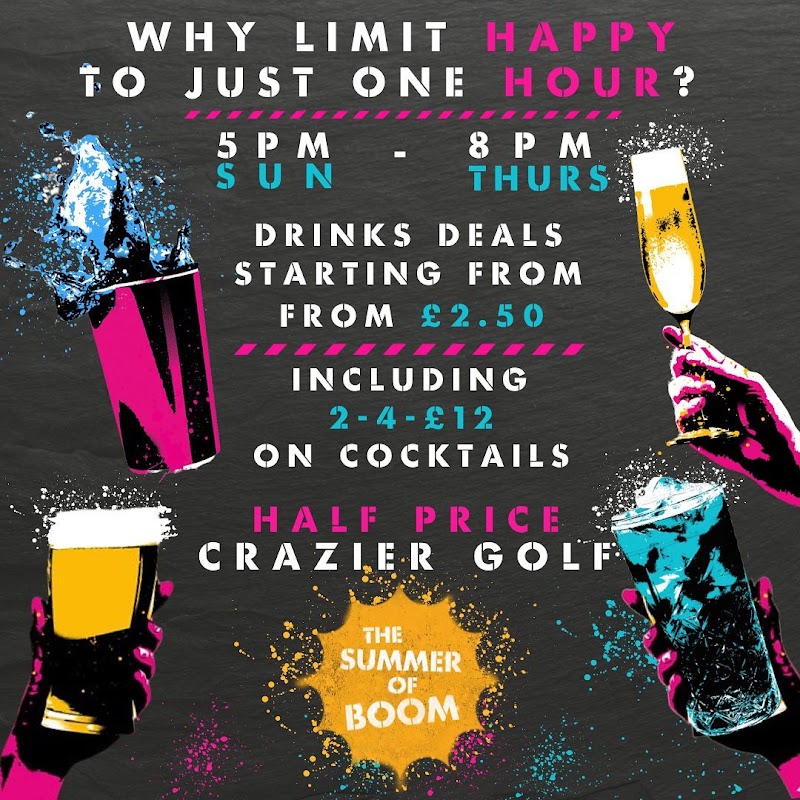 Boom Battle Bar Sheffield is an activity centre offering games such as Axe Throwing and Karaoke for groups including families and corporate events. The venue caters for social gatherings, parties, and provides options for group bookings.