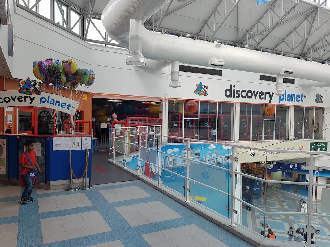 Discovery Planet is a soft play activity centre located in Surrey Quays, London, catering to children under the age of 10. It features a dedicated toddler area for children aged 0-4 and offers various play structures across two levels.