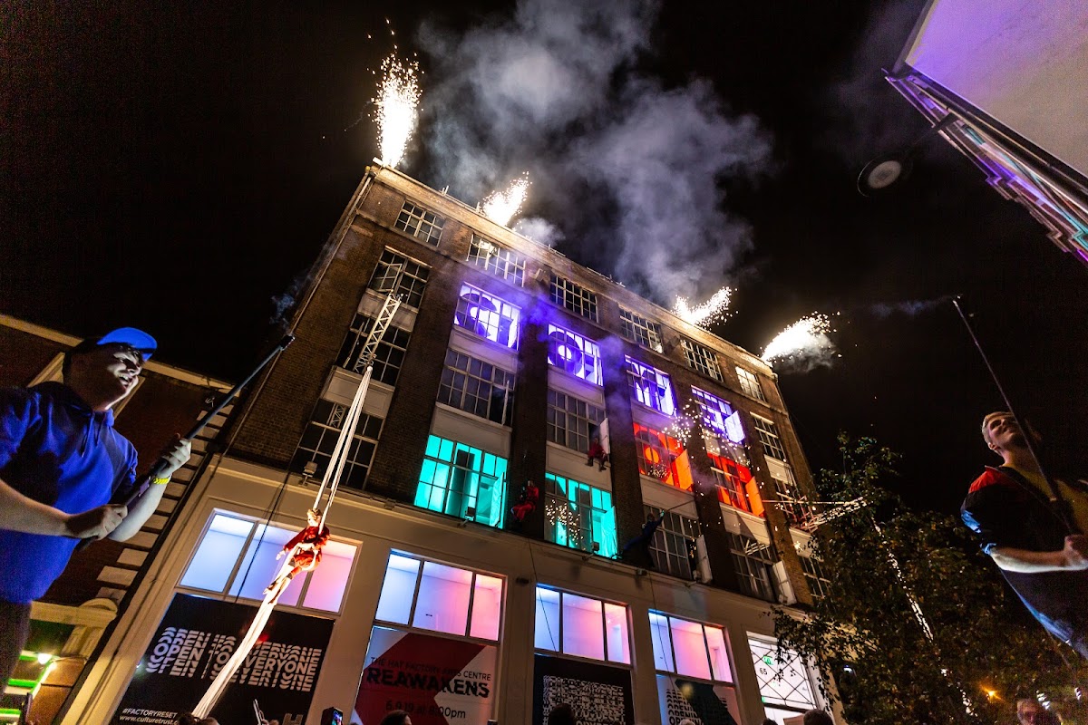 Hat Factory Arts Centre is a children's activity centre in Luton offering a variety of events such as music, comedy, and dance. The venue includes the Hat Factory Café & Bar which serves food and beverages. It caters to families and hosts various cultural and community activities.