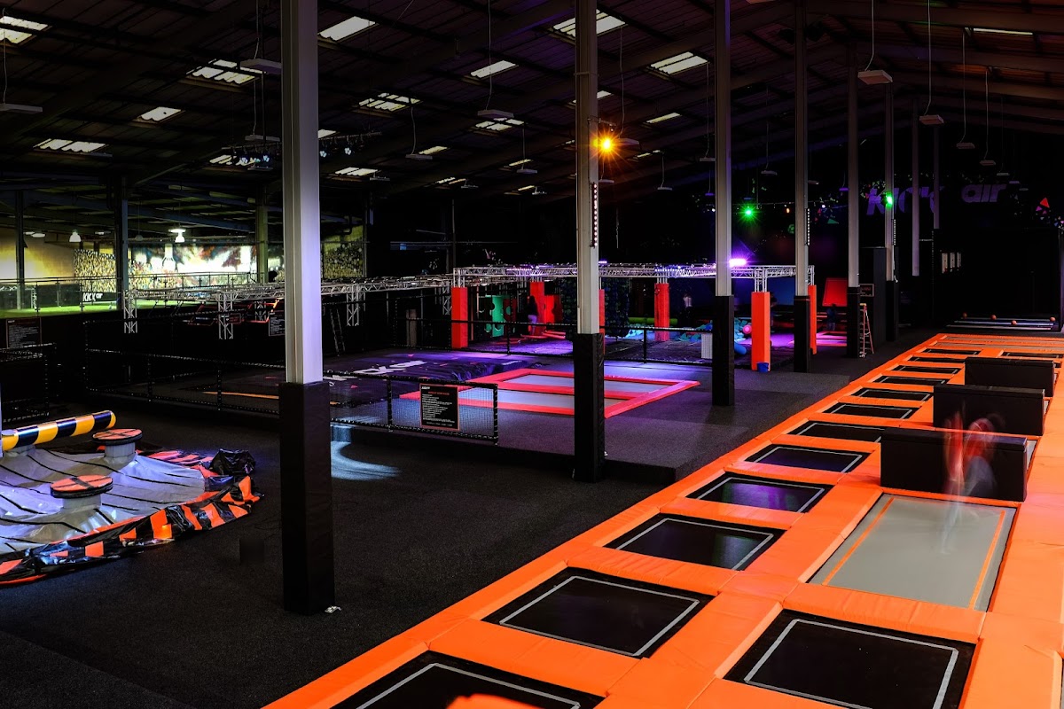 Kickair is a large indoor activity centre in Manchester that offers various play zones for kids aged 0 to 5 in a dedicated toddler area, as well as an action zone for older kids and adults. It features trampolines, inflatable challenges, and a café for refreshments.