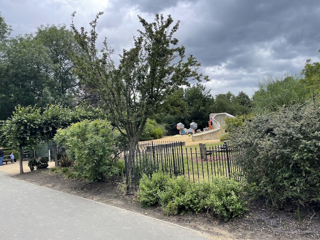 Marylebone Green Playground is an outdoor playground located in The Regent's Park, suitable for children up to the age of 12. It features three themed zones: Traditional, Art, and Natural, offering climbing frames, a spiraling concrete folly, and a living willow tunnel.