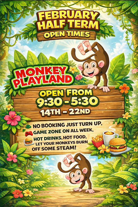 Monkey Playland is a children's soft play centre in Haslingden, catering to kids up to 12 years old. It features a dedicated toddler area, a café, and unique attractions like inflatable bumper cars and a sensory room for children with disabilities.