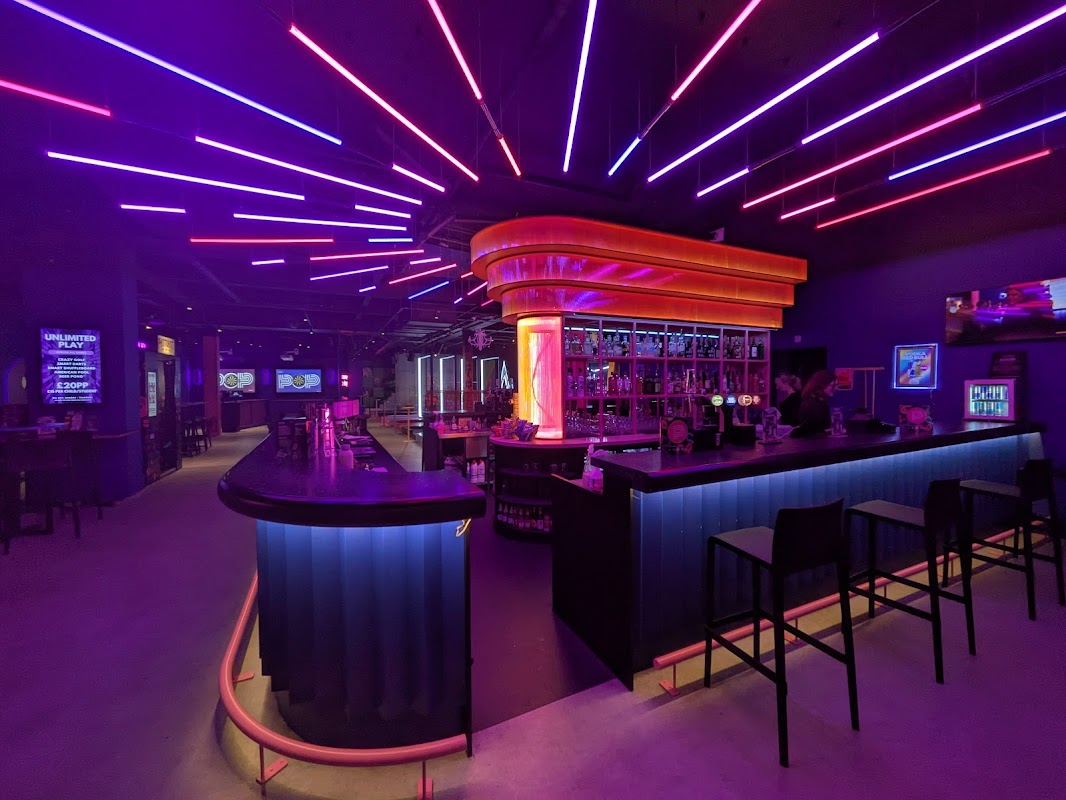 Pop Playrooms is a children's activity centre in Kingston upon Thames that offers a variety of games including mini golf, darts, and pool. It caters to families and groups for parties, with offerings like bottomless drinks and themed events.