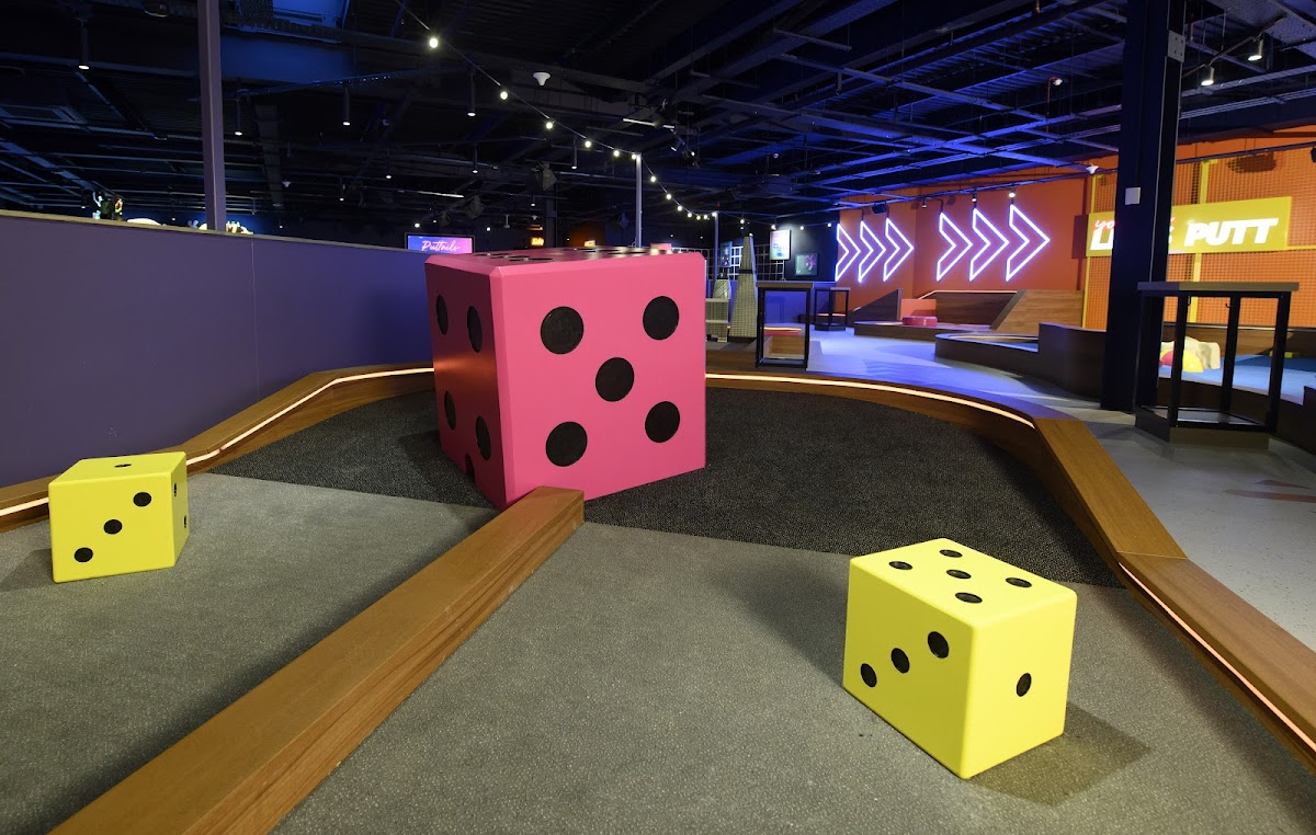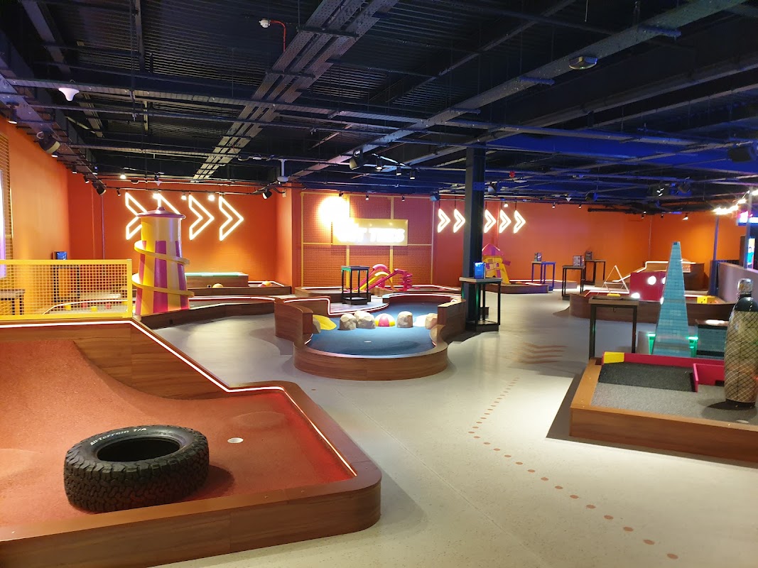 Putt & Play Peterborough is a family-friendly mini golf and activity centre featuring three 9-hole courses. It caters to all ages and includes a diner and amusement games.