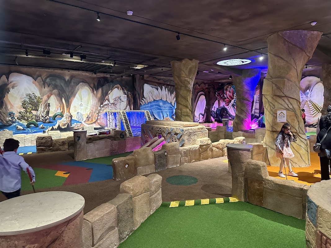 Putt Crazy is an indoor adventure golf course located in Harrow, featuring two 9-hole courses inspired by the Mayan world. It caters to families and offers a café with a range of drinks and snacks.