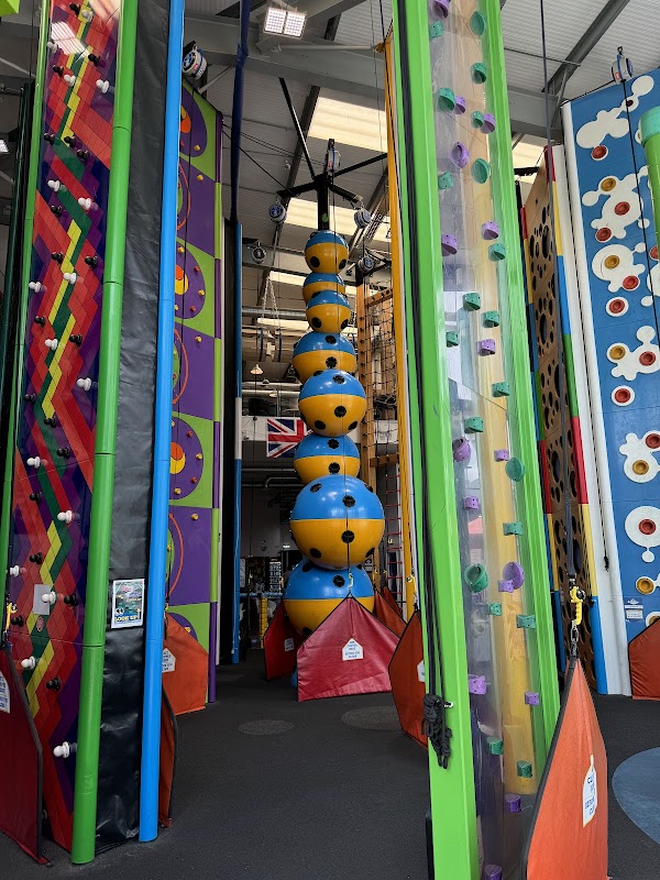 Rock Up Whiteley is an indoor adventure centre in Fareham featuring climbing walls, a High Ropes course, and a soft play area for children up to age 5. It offers birthday party packages and is accessible to all ages and abilities.