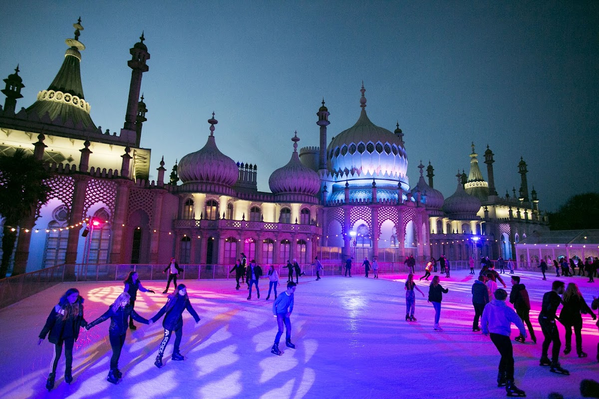 Royal Pavilion Ice Rink is an outdoor ice skating venue in Brighton, offering a festive atmosphere during the winter season. It caters to families with children and features a rinkside bar and kitchen for warming snacks and drinks.