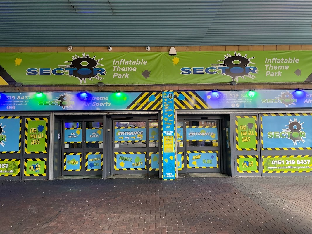 Sector 8 is an indoor inflatable theme park in Liverpool catering to children of various ages and abilities. It features a large inflatable arena, a dedicated area for toddlers, and offers party packages as well as sensory sessions for children with additional needs.