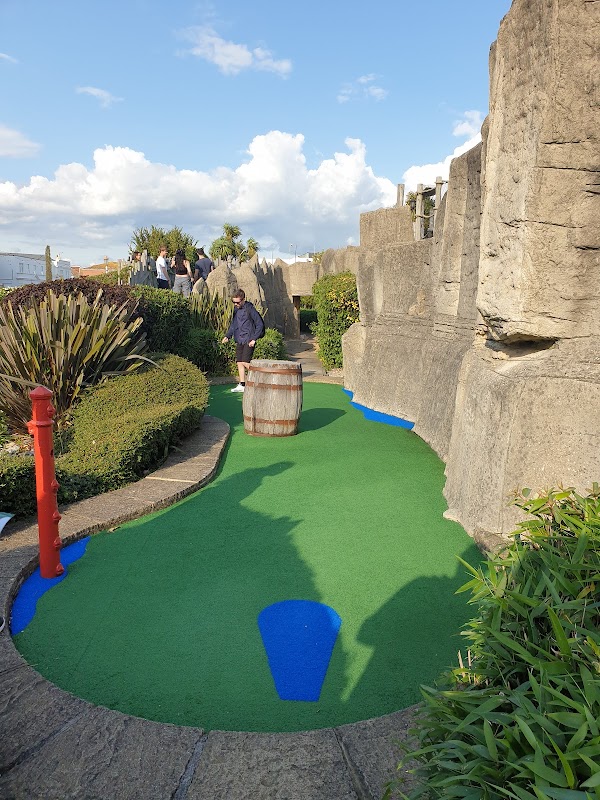 Treasure Island Adventure Golf is an outdoor miniature golf course in Eastbourne, themed around pirates. It features an 18-hole course that caters to families, particularly enjoyable for children under 16. Unique elements include bridges and caves with pirate lore.
