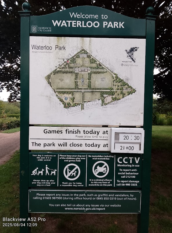 Waterloo Park is an outdoor children's activity centre in Norwich, featuring sports and a children's splash pad. It is open until dusk and provides parking facilities.